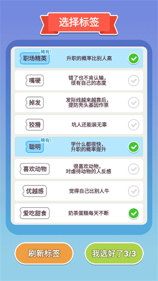 1、从18岁开始,经历大学、求职、升职、退休等人生关键阶段,每个阶段会触发不同剧情任务。