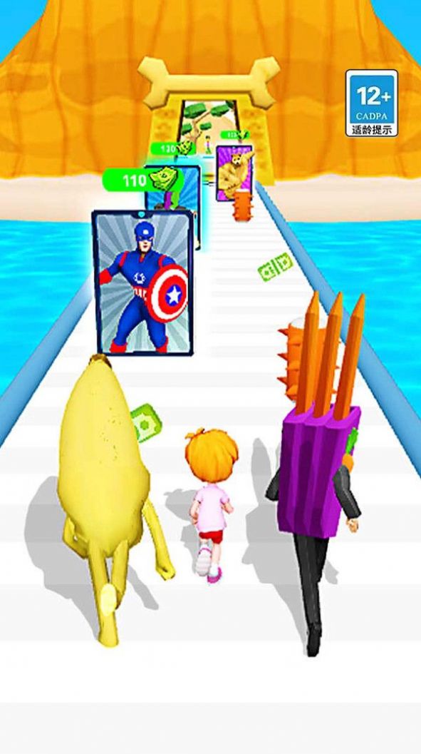 1.玩家置身于缤纷的香蕉乐园,扮演冲浪者去完成一系列的冲刺冒险;
