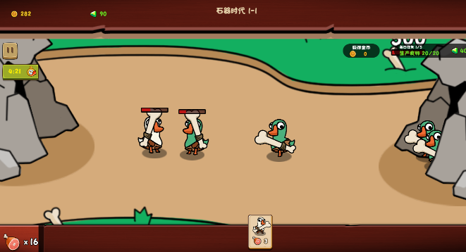 1、搜集地图上的食物资源,用以招募更多鹅鸭战士;