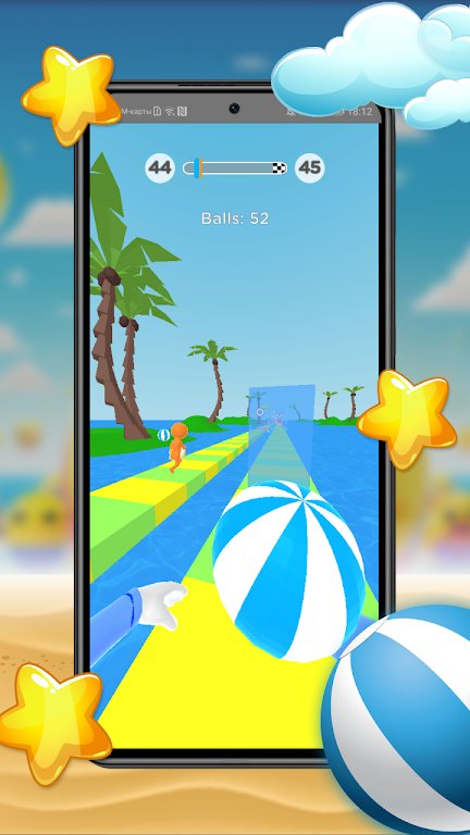 1、控制笑脸球球在各种障碍中穿梭,收集金币和道具;