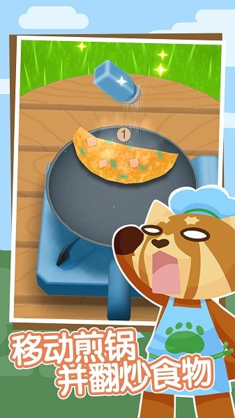 1、下载游戏以后,进入游戏界面,根据提示提示移动煎锅。